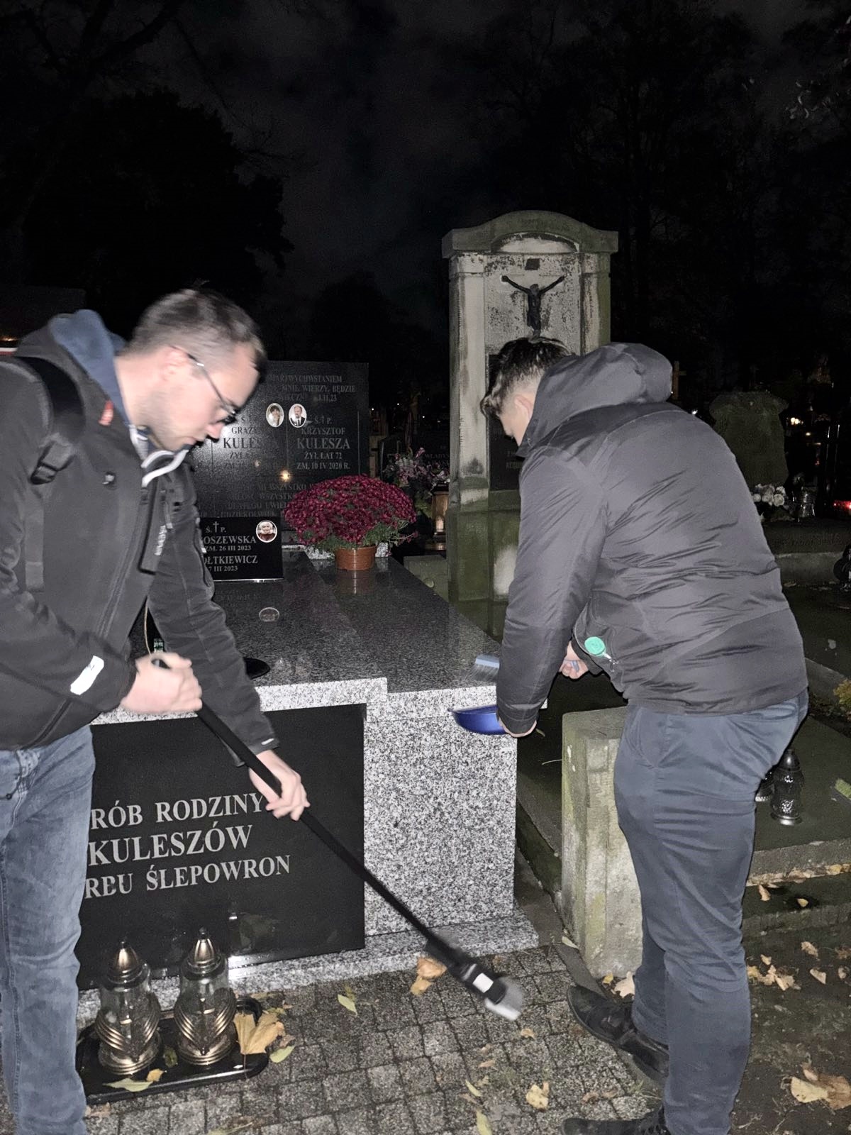 Wolontariusze uporządkowali groby, usunęli liście i śmieci oraz zapalili znicze.