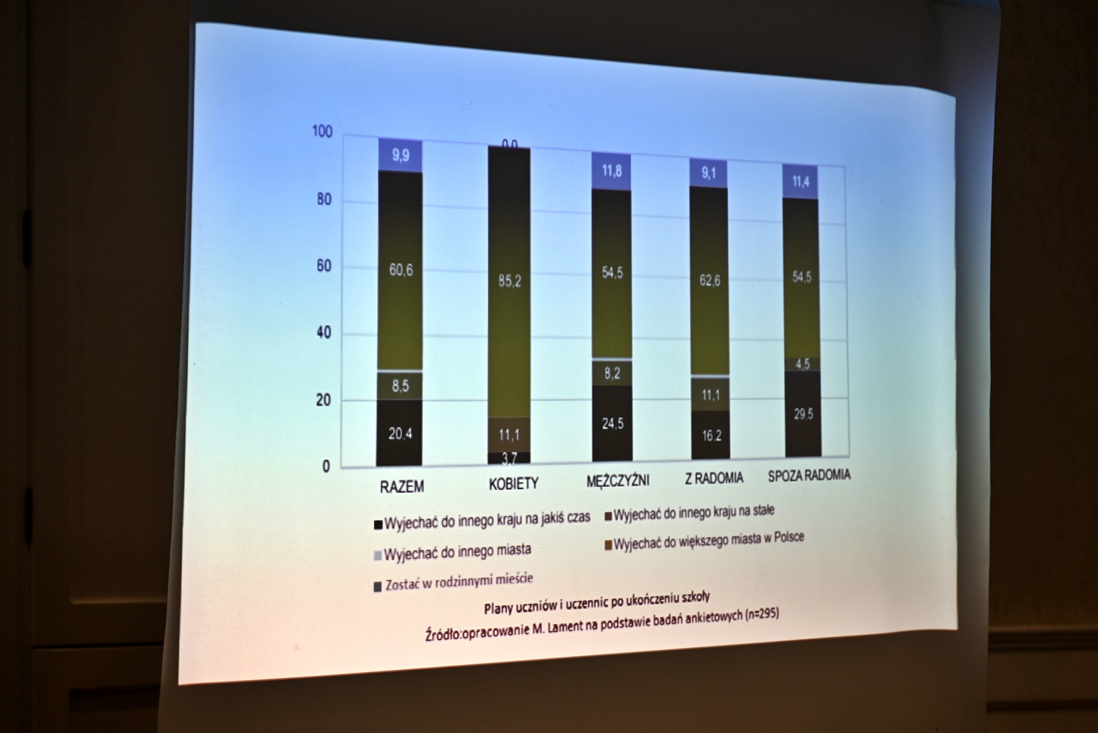 Mimo że ponad połowa uczniów i studentów uważa Radom za dobre miejsce do życia, aż 44% nie widzi tu dla siebie przyszłości zawodowej. Najbardziej krytyczne są młode kobiety – 70% z nich wskazuje, że miasto nie daje im przestrzeni do rozwoju pasji.
